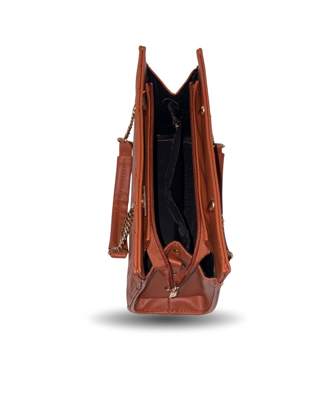 This stylish brown quilted handbag combines elegance and everyday practicality. Designed with a luxurious chain-handle detail and rich faux-leather finish, it offers both fashion and functionality. With multiple compartments and a detachable long strap, it’s perfect for work, outings, events, or daily use.
