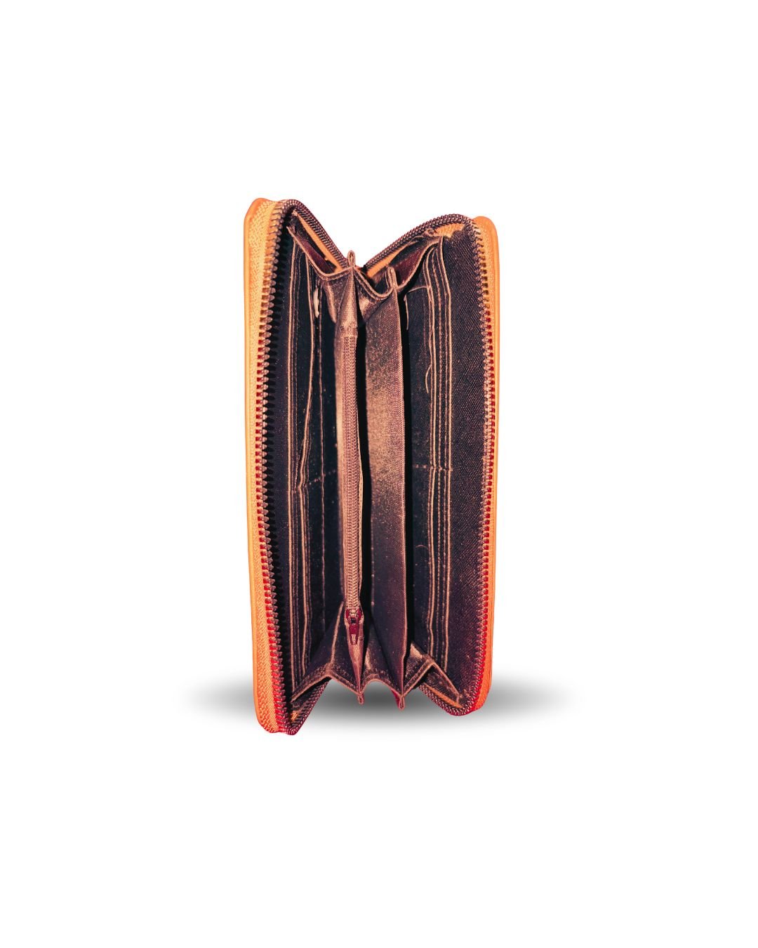 A sophisticated orange color women’s wallet that blends style and utility. Crafted from high-quality synthetic or genuine leather, this wallet features a zip-around closure to secure your contents and a spacious interior layout. Inside, you’ll find multiple card slots, several compartments for cash and receipts, and a coin pocket. The sleek design and durable build make it a practical choice for daily use or as a stylish accessory for work and travel.